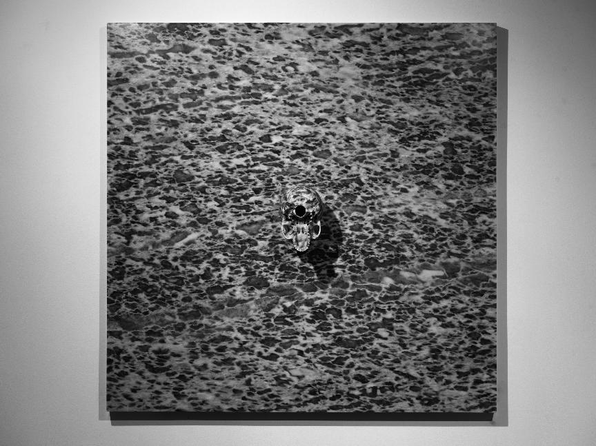Repouso, mármore, aço inoxidável; 52x 50x 7cm; 2014